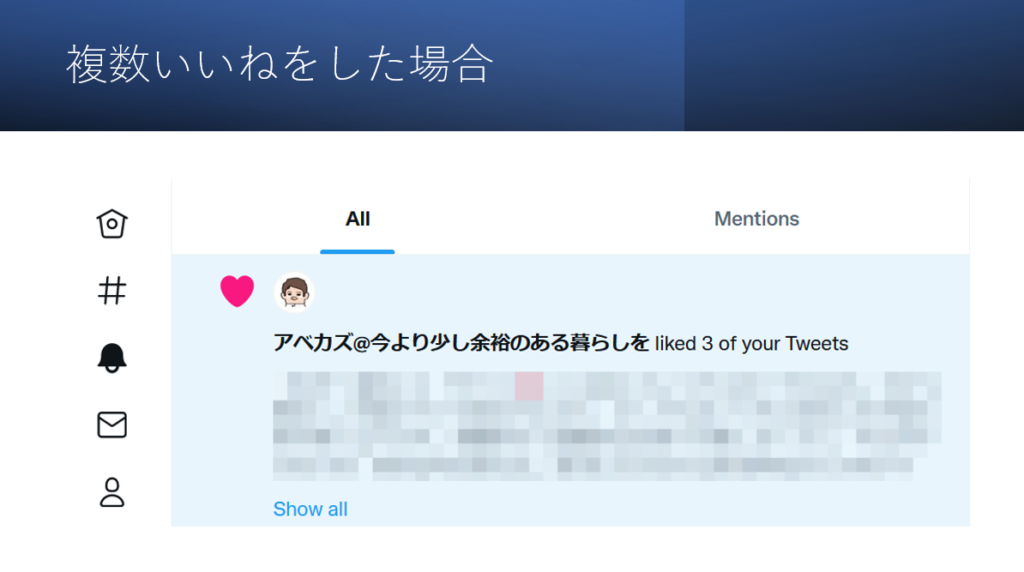 複数いいねでは、○○さんがあなたの投稿に△個いいねをしたかが表示されます。この方が目立ちますよね。