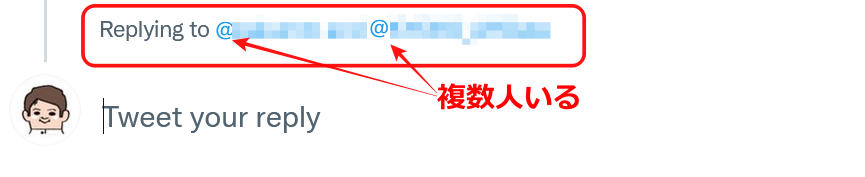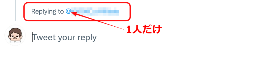 リプライをするときは「Replying to」の後の”@”を確認しましょう。1人であれば大丈夫です。